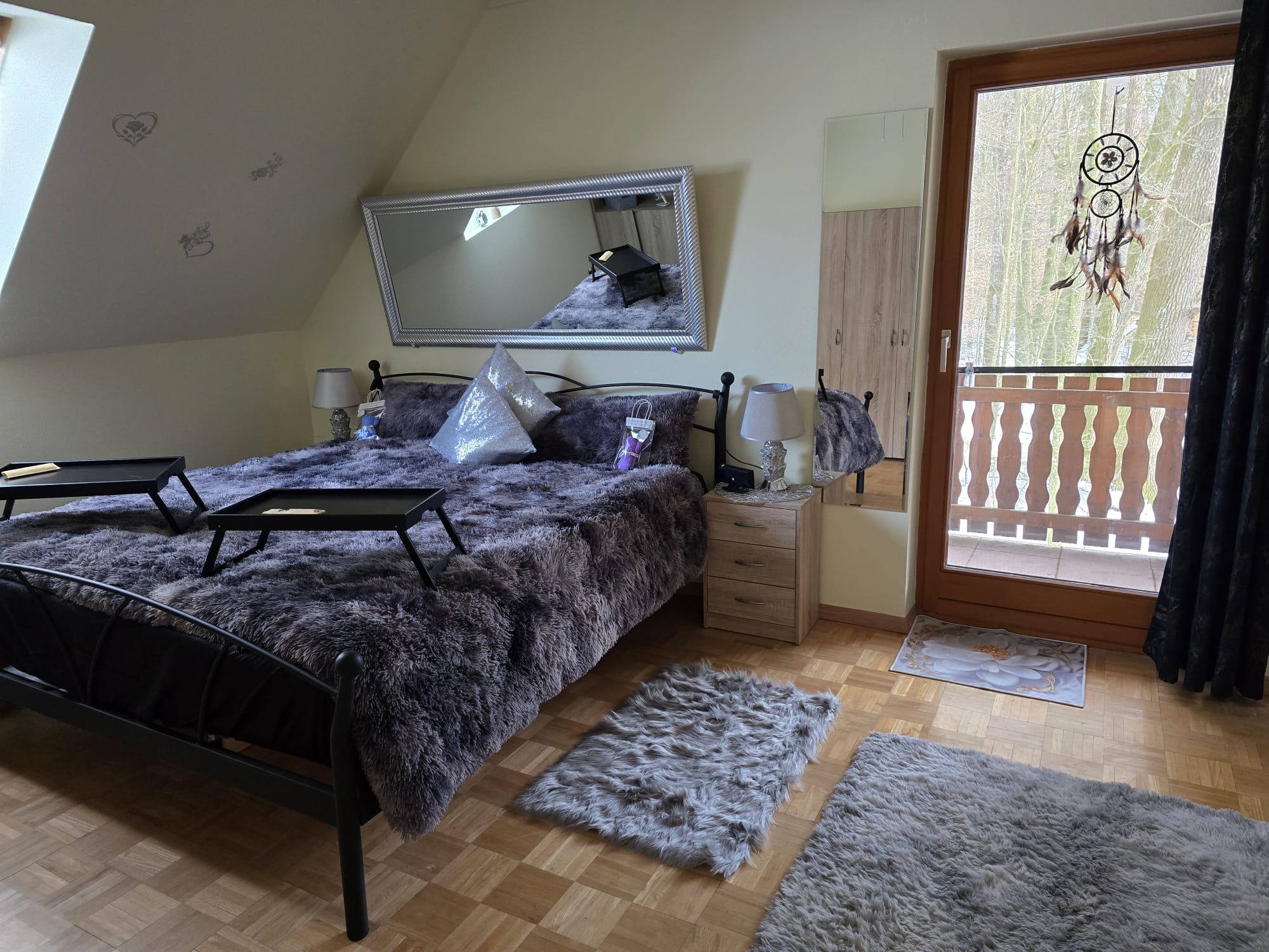 Zusätzlich gibt es einen ruhigen Balkon direkt am Wald –ideal zum Waldbaden, meditieren oder einfach nur Sein.