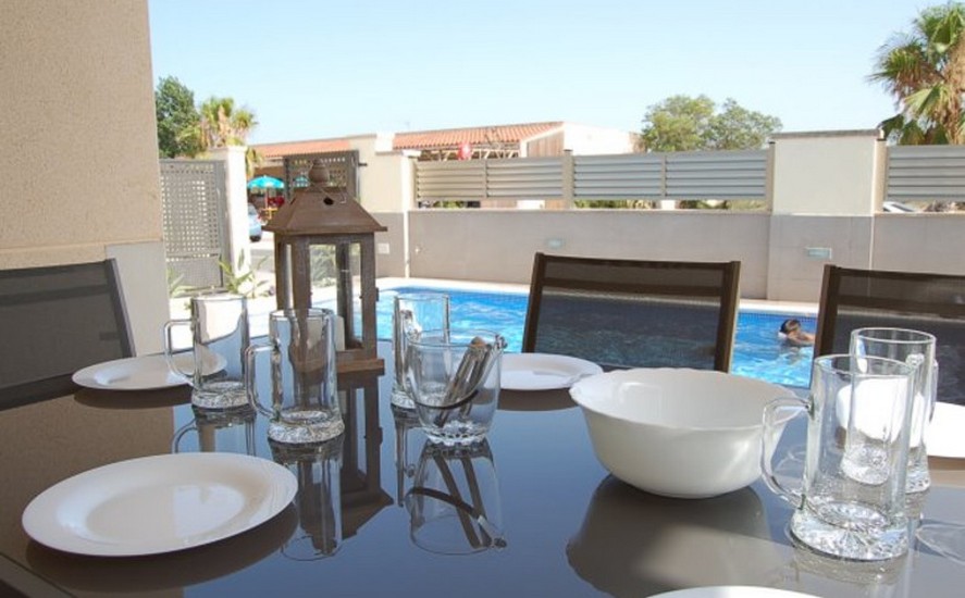 Das gemütliche Wohnzimmer und der moderne Poolbereich laden zu einem entspannten Urlaub ein. Unser Ferienhaus ist mit 3 Schlafzimmern ausgestattet, ein Schlafzimmer mit Doppelbett und 2 Schlafzimmer mit jeweils 2 Einzelbetten.Klimaanlage, gratis W-LAN, Spülmaschine, sowie deutsches Satelliten TV gehören zur Ausstattung. Das Haus wurde durch einen neuen Pool mit gemütlichen Sonnenliegen direkt vor der Pool-Terrasse und eine PKW Garage erweitert. Die amerikanische Küche ist komplett ausgestattet. Das Badezimmer verfügt über eine Badewanne mit Duschvorrichtung.Hinter dem Haus befindet sich zusätzlich eine schattige und von außen nicht einsehbare gemütliche Barbeque-Ecke mit Sitzmöbeln und Grill.Eine Garage befindet sich direkt am Haus auf dem abgeschlossenen Grundstück.